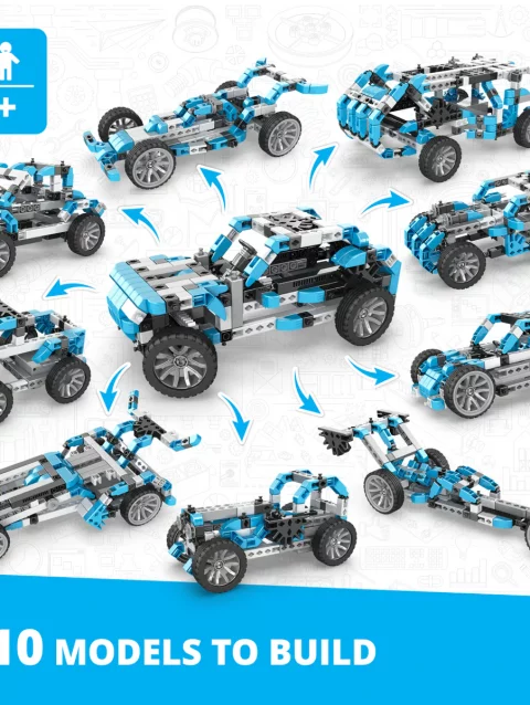 Robotics Smart Machines es un innovador kit educativo que permite a los niños explorar el fascinante mundo de la robótica y la programación a través de la construcción de modelos motorizados con sensores reales. Este set STEM combina piezas mecánicas con componentes electrónicos avanzados, permitiendo construir hasta 8 robots diferentes que se pueden programar y controlar mediante una app gratuita compatible con tabletas iOS y Android.